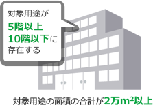 令別表第1(1)項から(4)項まで、(5)項イ、(6)項から(12)項まで、(13)項イ、(15)項及び(17)項(以下[対象用途]という。)に掲げる防火対象物(共同住宅、倉庫、格納庫は含まれません。)
